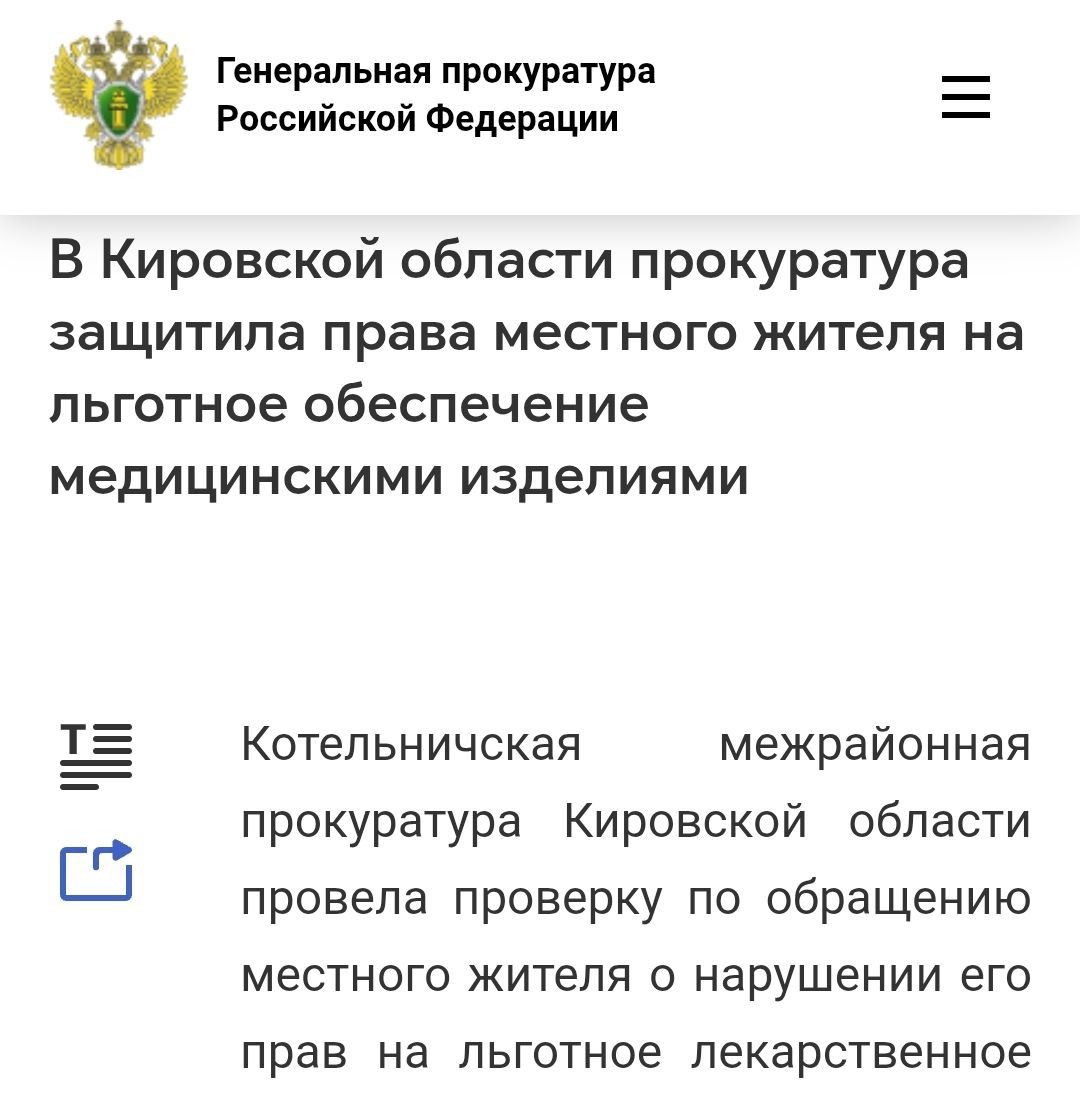 В Котельниче прокуратура защитила права местного жителя на льготное обеспечение медицинскими изделиями