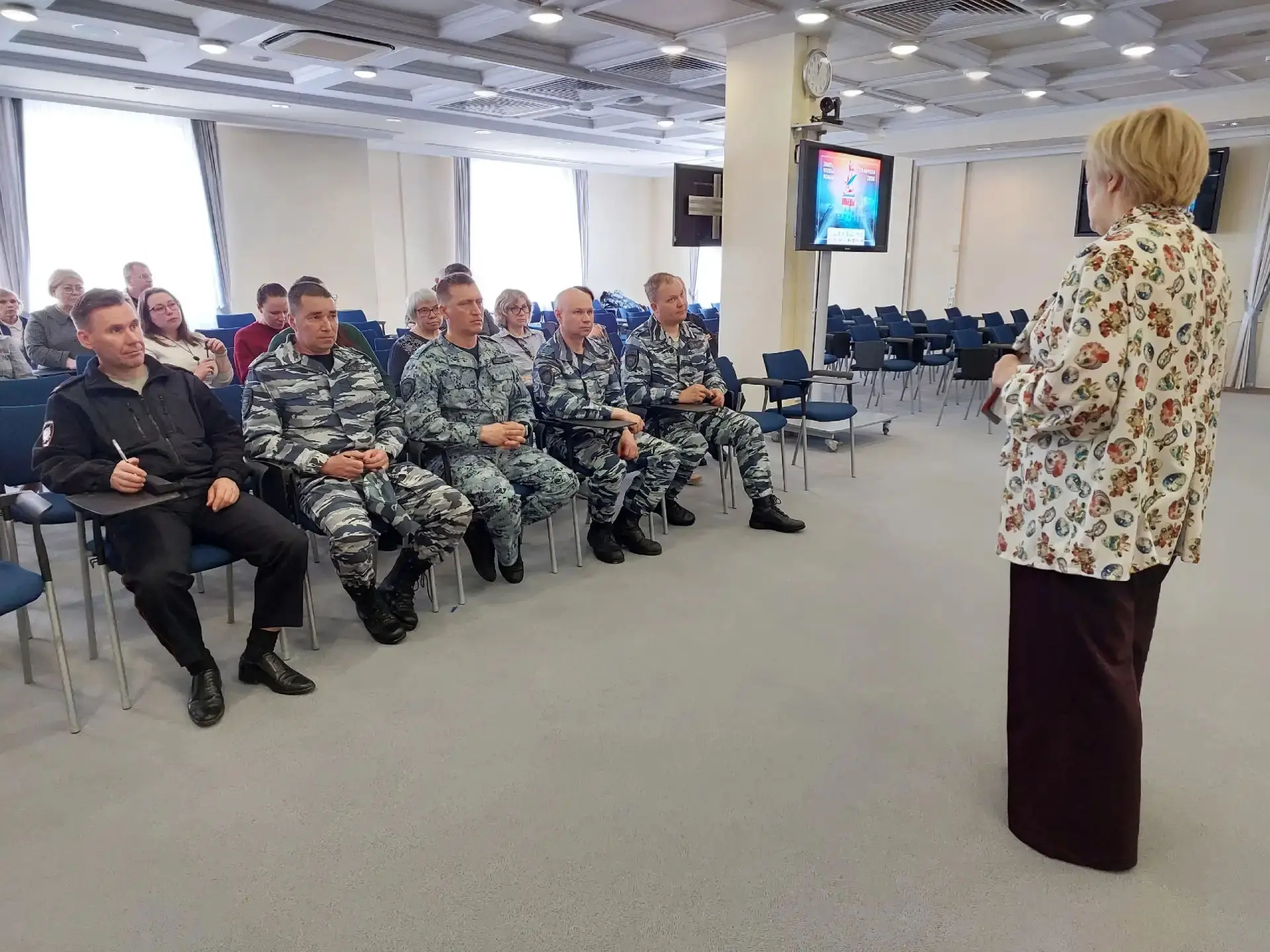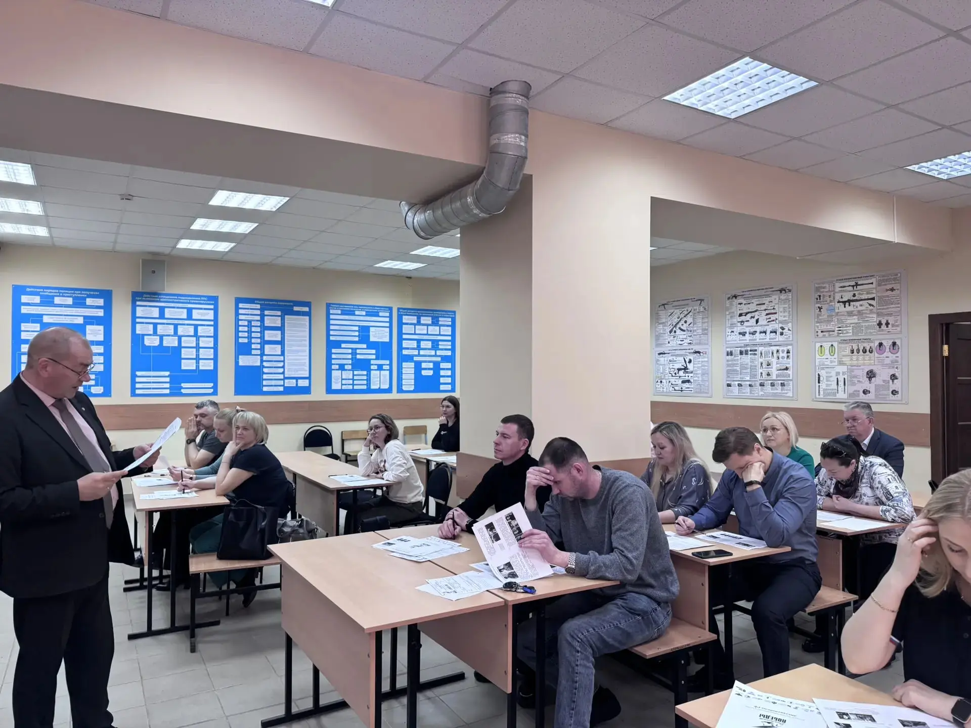 Порядка сорока сотрудников органов внутренних дел приняли участие в акции на базе учебно-спортивного комплекса УМВД России по Кировской области. Участники мероприятия решили тестовые задания о выдающихся полководцах, юбилейных датах 2026 года, а также о проведении специальной военной операции.