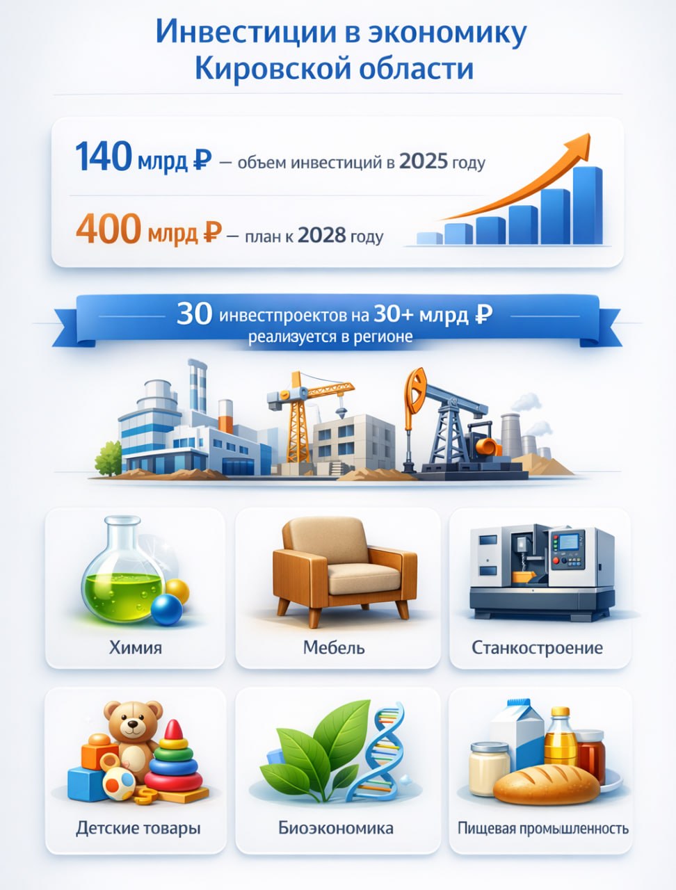 За три года объем инвестиций в Кировской области вырос на 50 миллиардов рублей, превысив 140 миллиардов по итогам 2025 года. Губернатор Александр Соколов рассказал федеральному информационному агентству «ФедералПресс», что в ближайшие три года этот показатель планируют довести до 400 миллиардов.