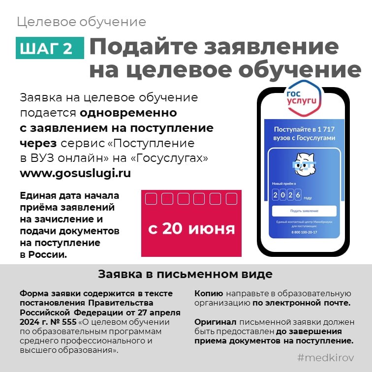 Подробный порядок поступления на целевое обучение — в карточках.