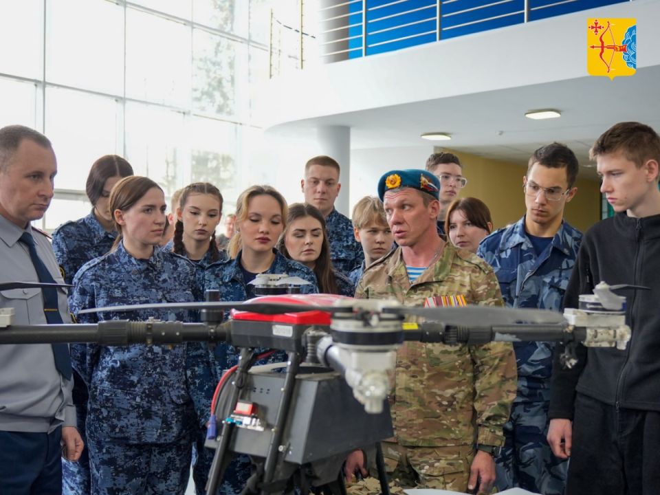 На выставке представлены фотографии бойцов 299 гвардейского парашютно-десантного полка с передовой, трофейные экземпляры вражеских беспилотников, гранатометов и другого вооружения.