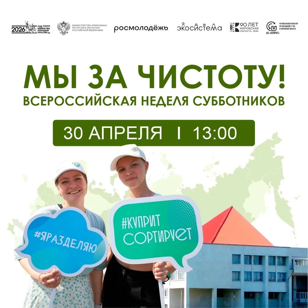 Приходите всей семьей, с друзьями или коллегами! Ваш вклад в чистоту Кирова и пример ответственного отношения к природе очень важны.