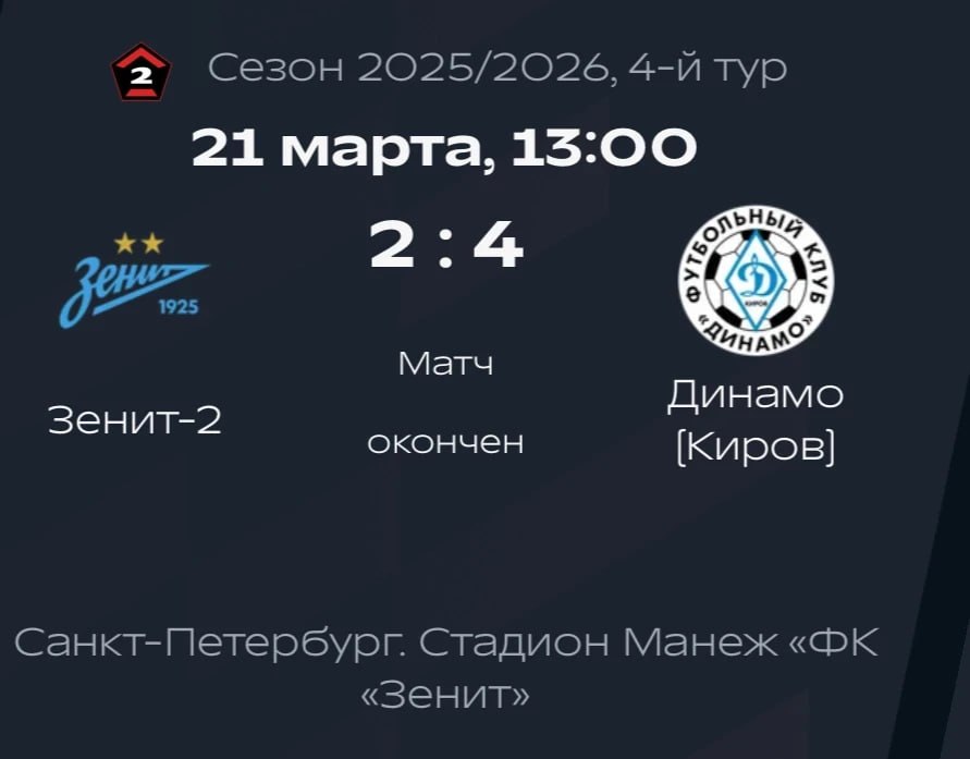 Турнир проходил в Санкт-Петербурге, кировские футболисты играли с «Зенитом-2».
