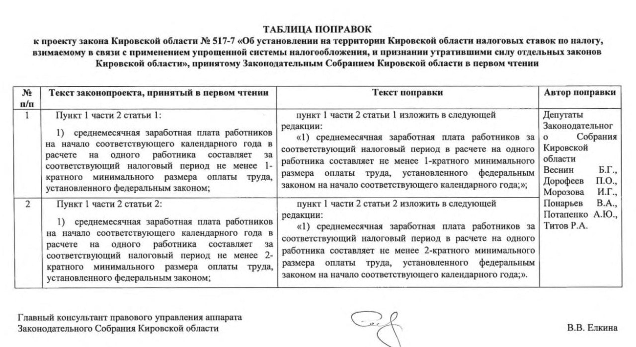Проект закона о пониженных ставках УСН в Кировской области принимают с поправкой от налоговой.