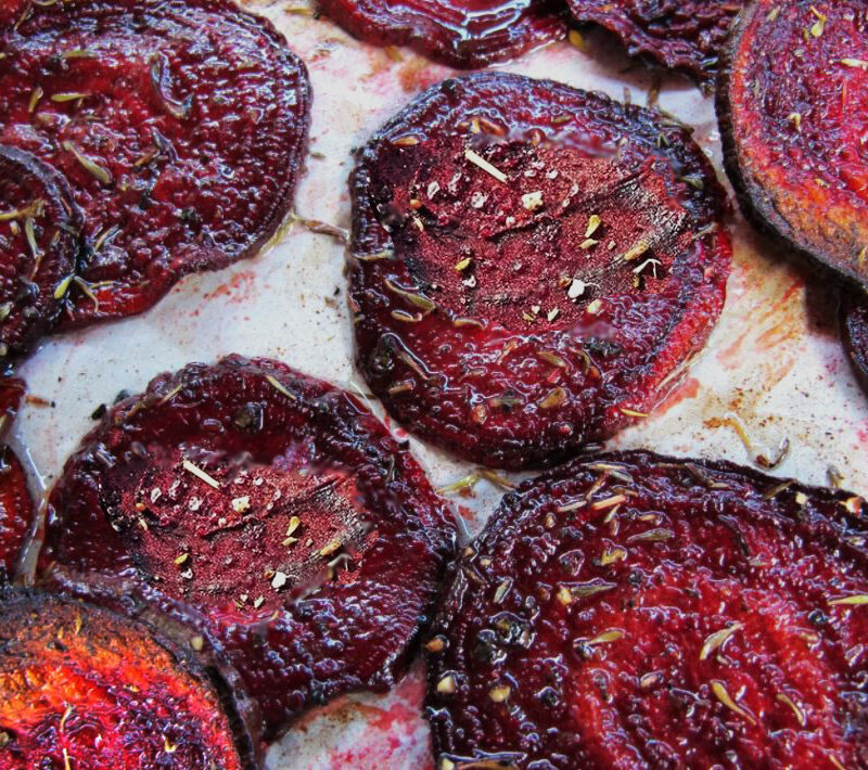 Свеклу следует нарезать тонкими ломтиками, немного смазать оливковым маслом и посыпать солью и специями. После этого ломтики следует запекать в духовке до золотистой корочки. Готовые чипсы получаются не только вкусными, но и чрезвычайно полезными!