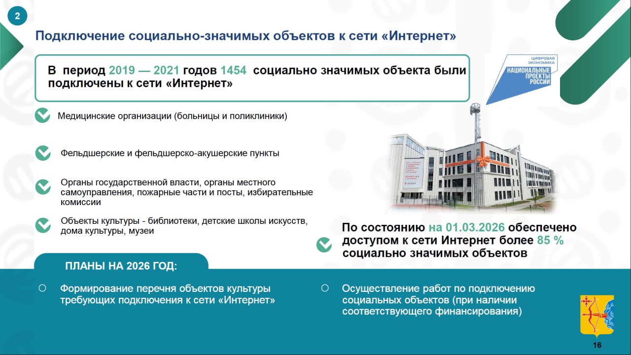 Подключение социально-значимых объектов к интернету.