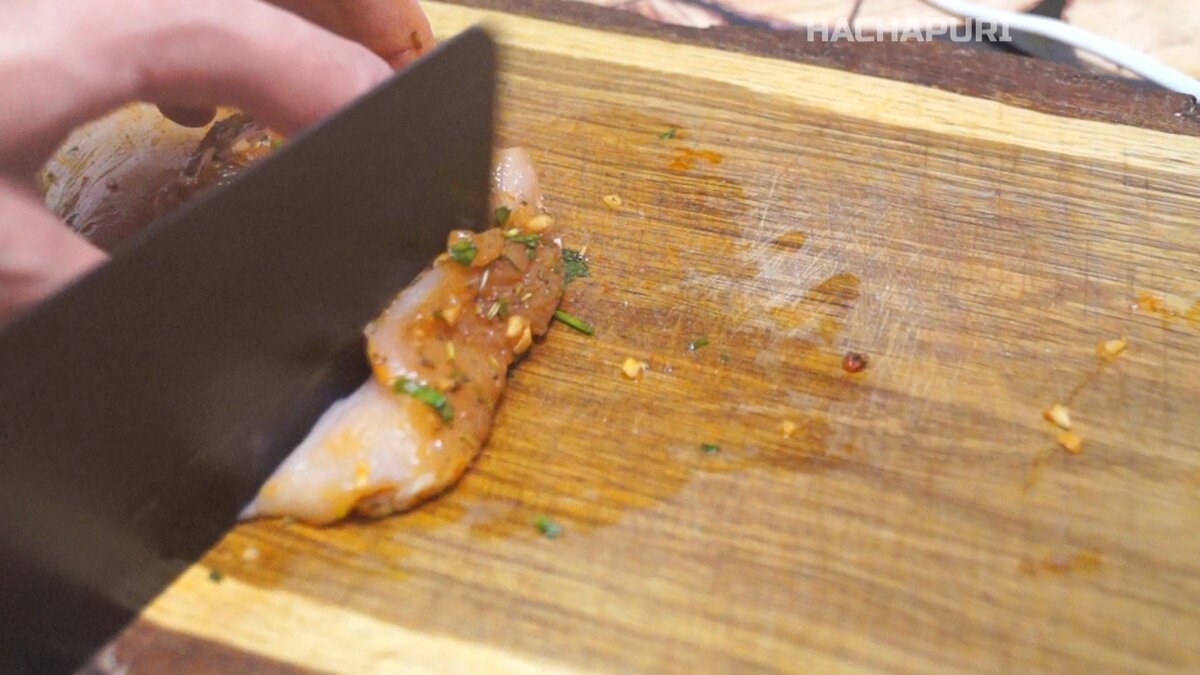 Для приготовления потребуется куриное филе. Лучше использовать заранее замаринованное мясо, чтобы дополнительно не терять время на предварительную подготовку. Куриное грудка нарезается на длинные и тонкие полоски, которые насаживаются на шпажки.
