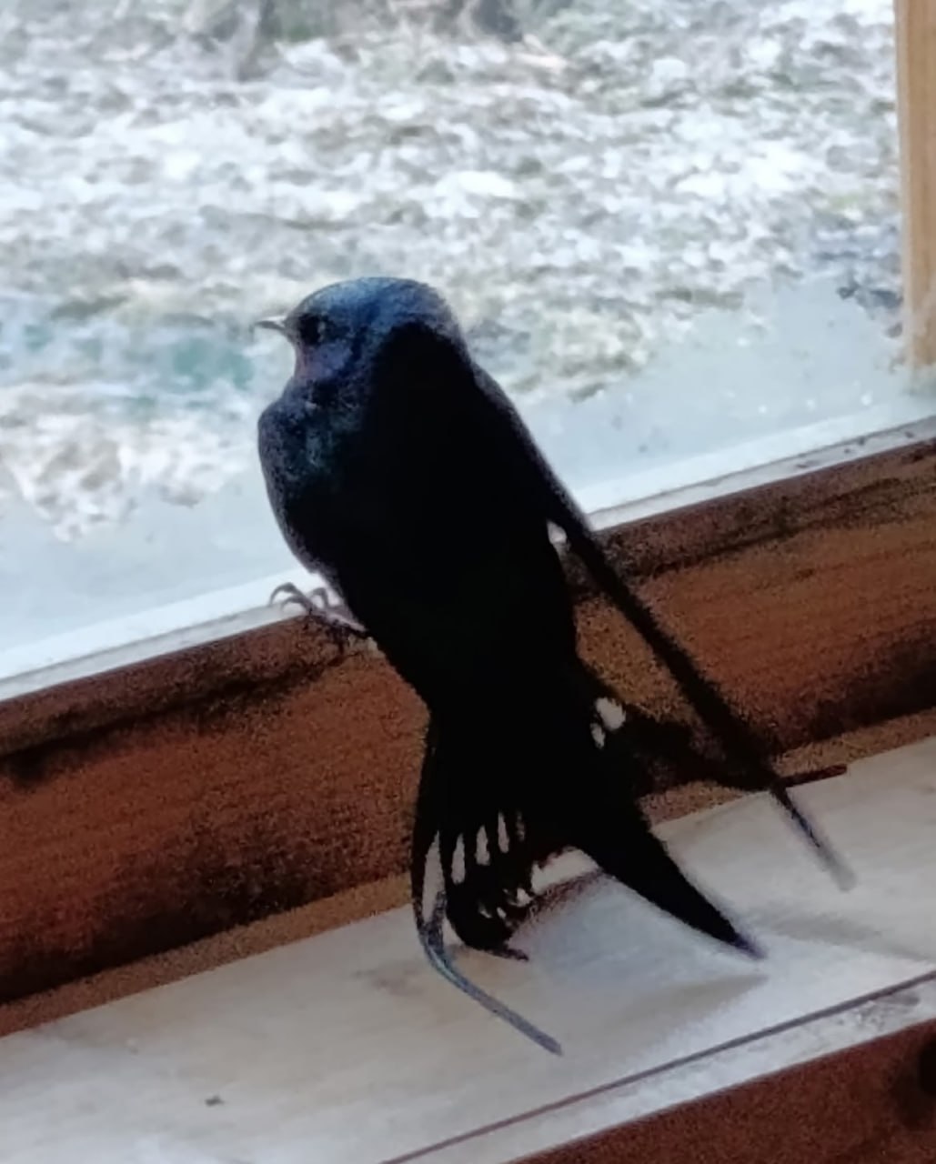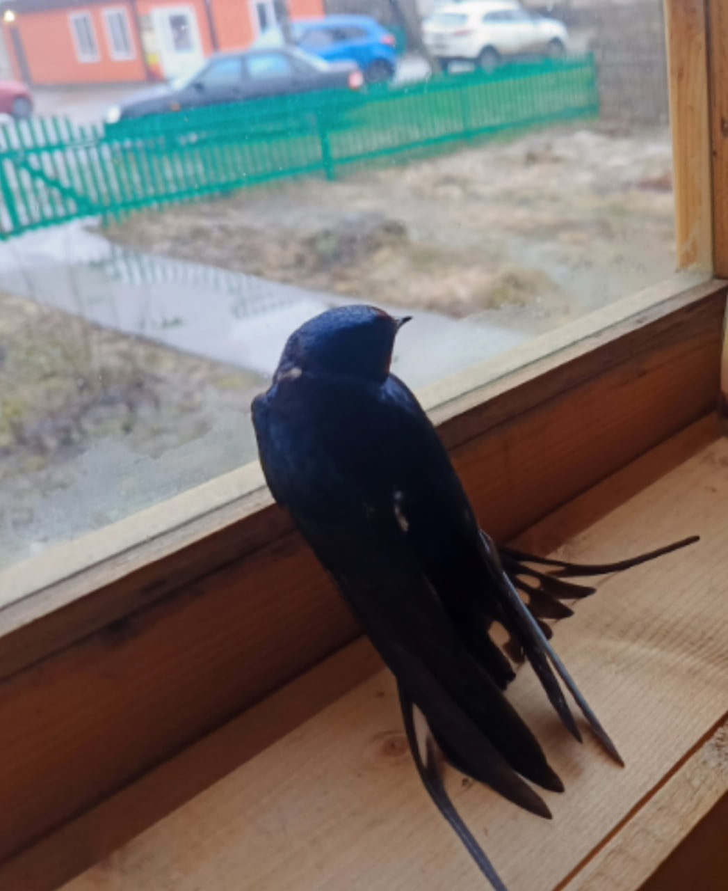 Сотрудники редакции постарались максимально бережно выпроводить необычную гостью обратно на волю. Там ее ждала вторая ласточка.