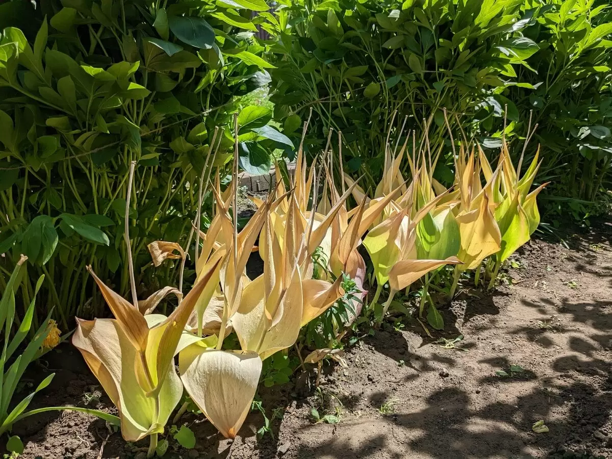 Важно помнить, что тюльпаны часто высаживаются в компании с многолетниками, такими как пионы. Эти растения прекрасно скрывают следы увядания тюльпанов, однако перед их цветением необходимо подвязать пионы, чтобы они не сгибались. Удаление тюльпанов важно для сохранения гармонии в цветнике, особенно когда пионовидные цветы начинают распускаться.