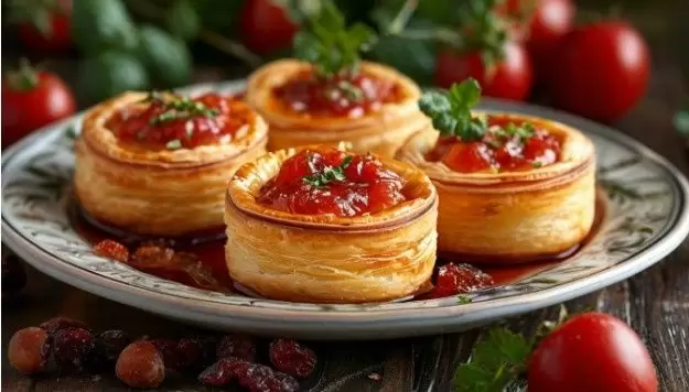Когда все компоненты готовы, начинается формирование блюда. На дно кастрюли укладываются коренья, а сверху размещаются стейки сазана, кожей вниз. Обжаренный лук, специи и следующие слои кореньев добавляют глубину вкуса. Все это заливается томатным соусом, в который входят томатный сок и овощной бульон. Для остроты блюда в конце приготовления добавляется уксус.