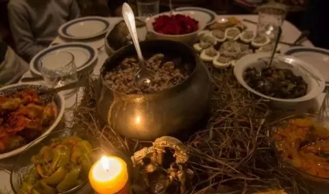 На ужин предки ставили ровно 12 постных блюд, символизирующих апостолов Христа. Среди них можно было найти запечённую без масла рыбу, различные соленья, постные пироги, каши без молока и масла, а также винегрет с сельдью.