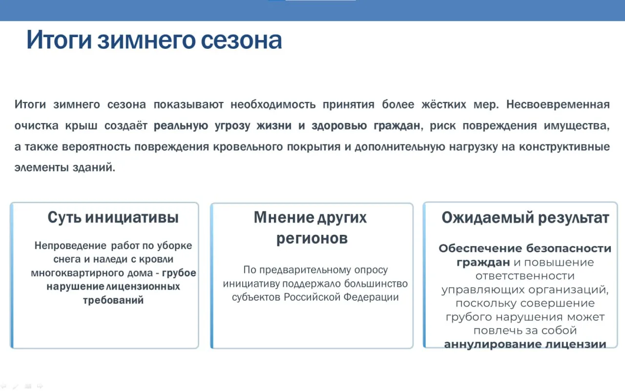 ГЖИ осмотрела 7,5 тысячи кровель и дворов. В 65% случаев уборку не проводили. Выдали 73 предписания. Три УК могут лишиться лицензии за повторное неисполнение требований.