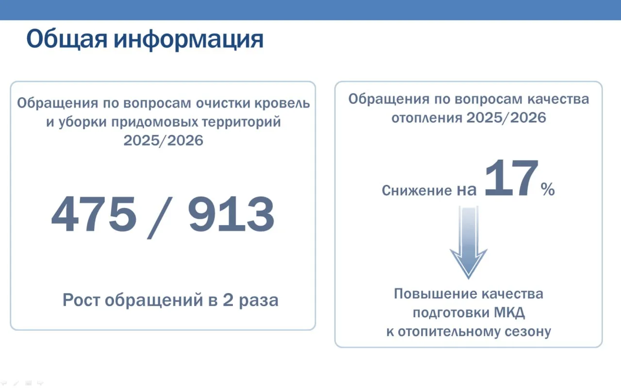 На совещании у губернатора подвели итоги зимы. Жалоб на уборку снега стало вдвое больше — 913 против 475. При этом аварий с отоплением не было, обращений по теплу стало на 17% меньше.