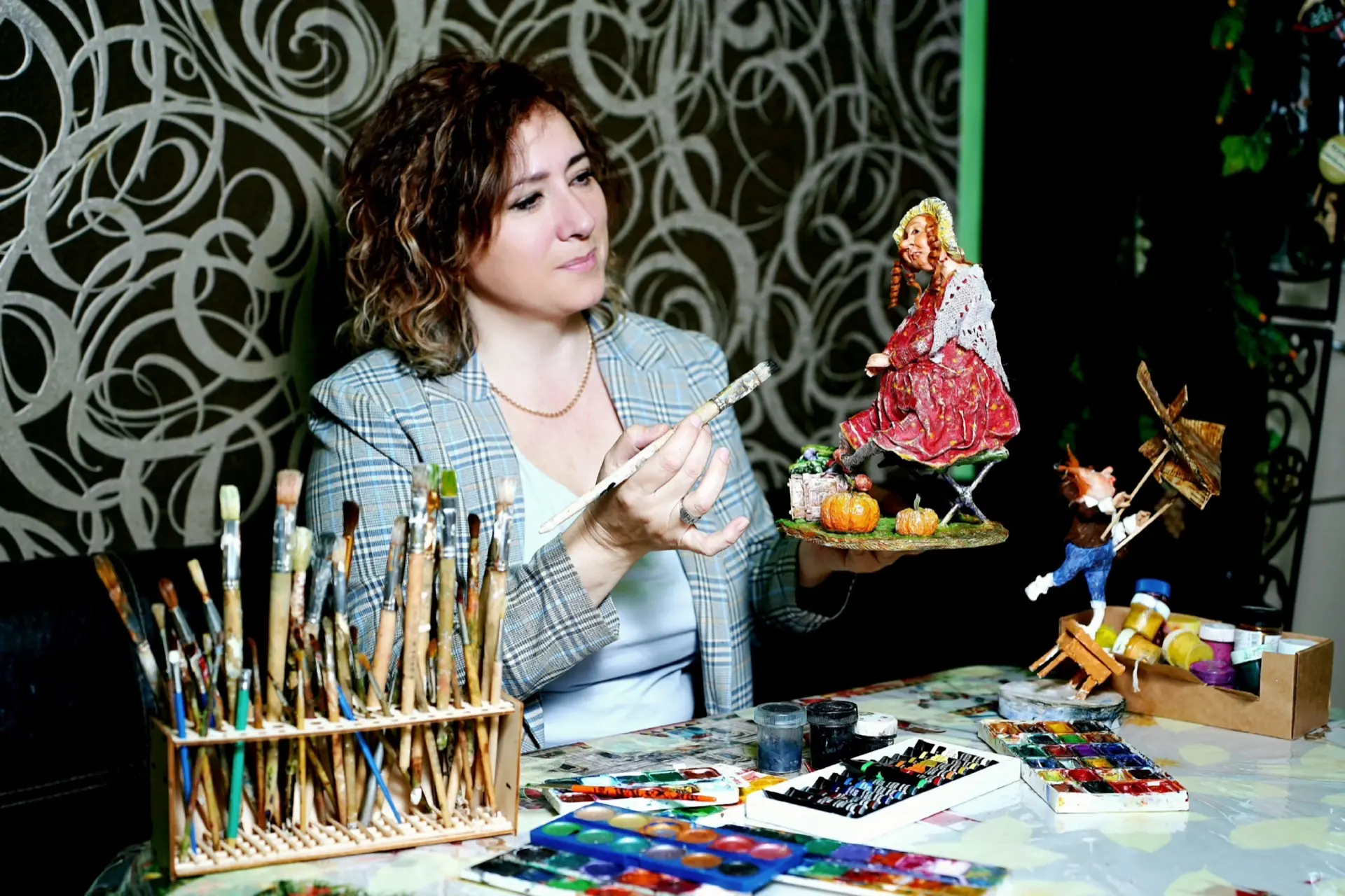 После напряженной рабочей недели в выходные и отпускные дни наша пенитенциарная красавица расцветает, занимаясь дорогим сердцу увлечением. Надежда Десницкая – участник, дипломант и лауреат более 90 творческих проектов, конкурсов, фестивалей, конференций и выставок. Несколько сотен уникальных кукол, ярких миниатюр сказочных домов и волшебных затейливых персонажей, выполненных из пластика и полимерной глины, зажигают добрый свет и радость в глазах, неподдельный интерес и желание создавать и творить у детей и взрослых, посещающих мастер-классы, творческие встречи и тематические экспозиции Надежды Алексеевны.
