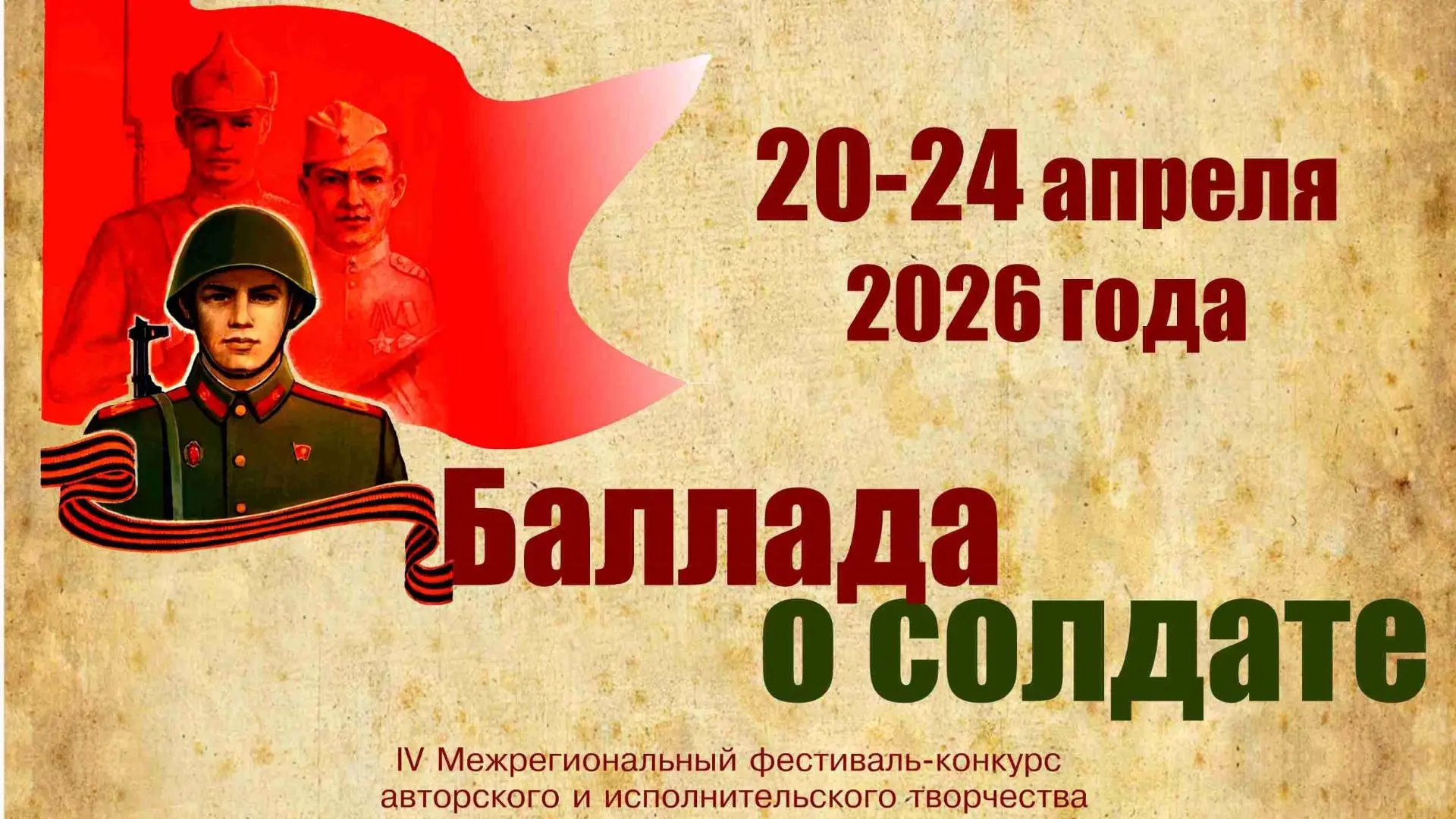 20 апреля в Детской музыкальной школе № 4 состоится IV межрегиональный фестиваль-конкурс авторского и исполнительского творчества «Баллада о солдате».