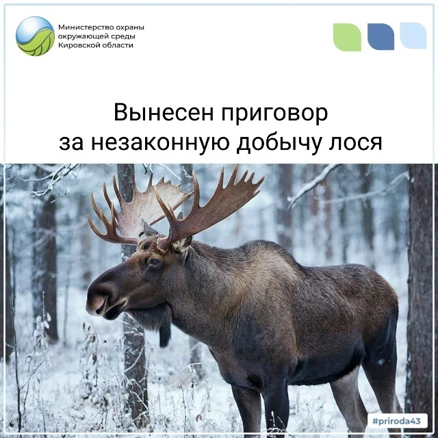 Мировой судья Омутнинского судебного района вынес приговор по уголовному делу в отношении жителя Афанасьевского округа. В ноябре 2025 года он незаконно добыл лося на территории местного общества охотников и рыболовов.