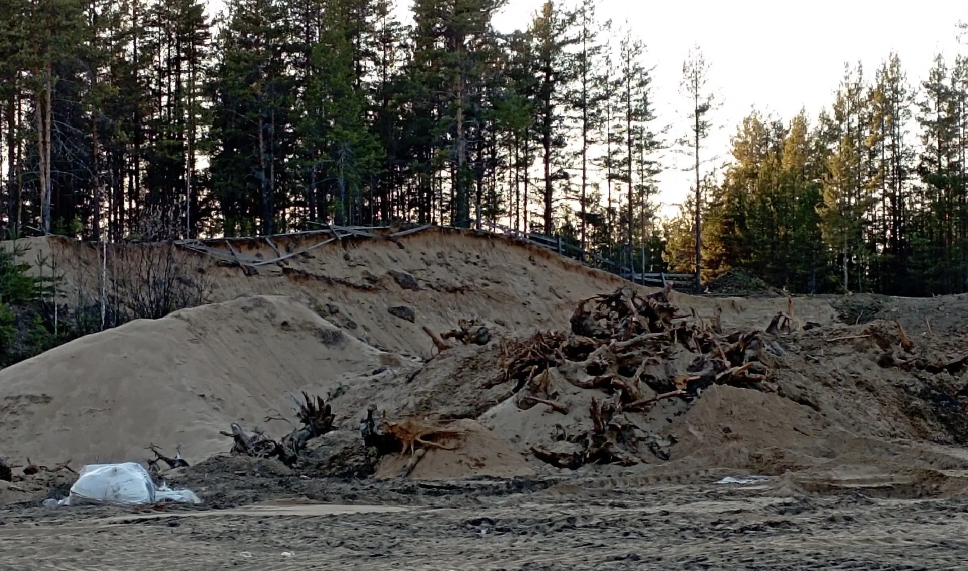 После завершения добычи песка рабочие оставили на территории бытовой мусор — бутылки, упаковку, ветошь, а также древесные отходы и поваленные деревья. Недропользователь пообещал провести «генеральную уборку» после схода снега. Общественники направили обращение в министерство имущественных отношений с просьбой взять ситуацию под контроль.