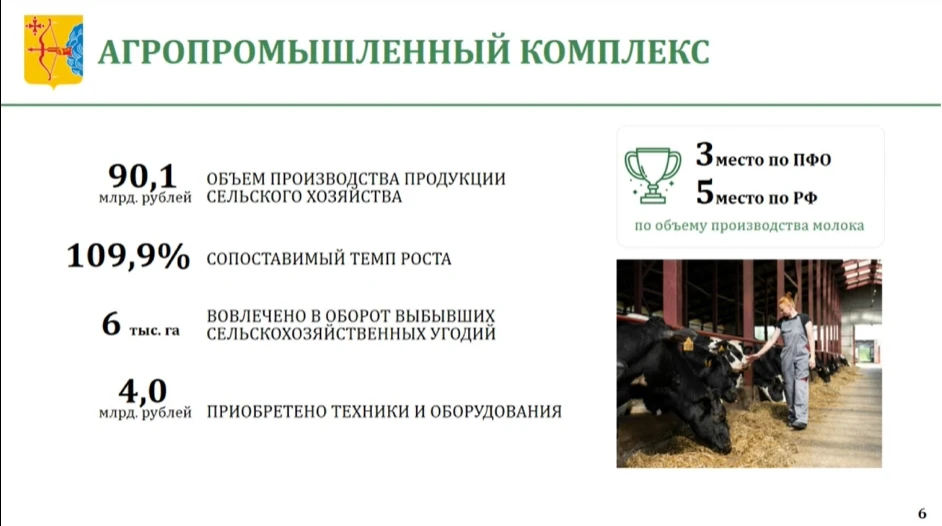 По объему производства молока регион занимает 5 место в Российской Федерации и 3 место в ПФО.