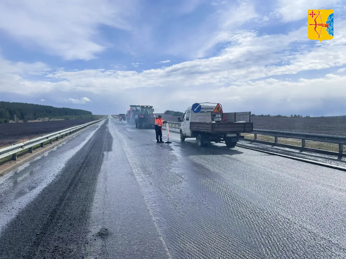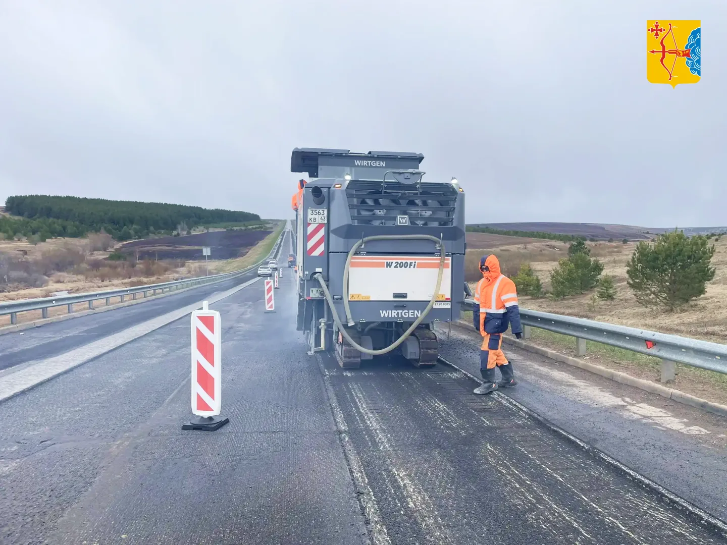 На данный момент ведется фрезерование изношенного асфальтобетонного покрытия. Вскоре специалисты приступят к устройству выравнивающего и верхнего слоёв асфальтобетона, после чего укрепят обочины и нанесут дорожную разметку.